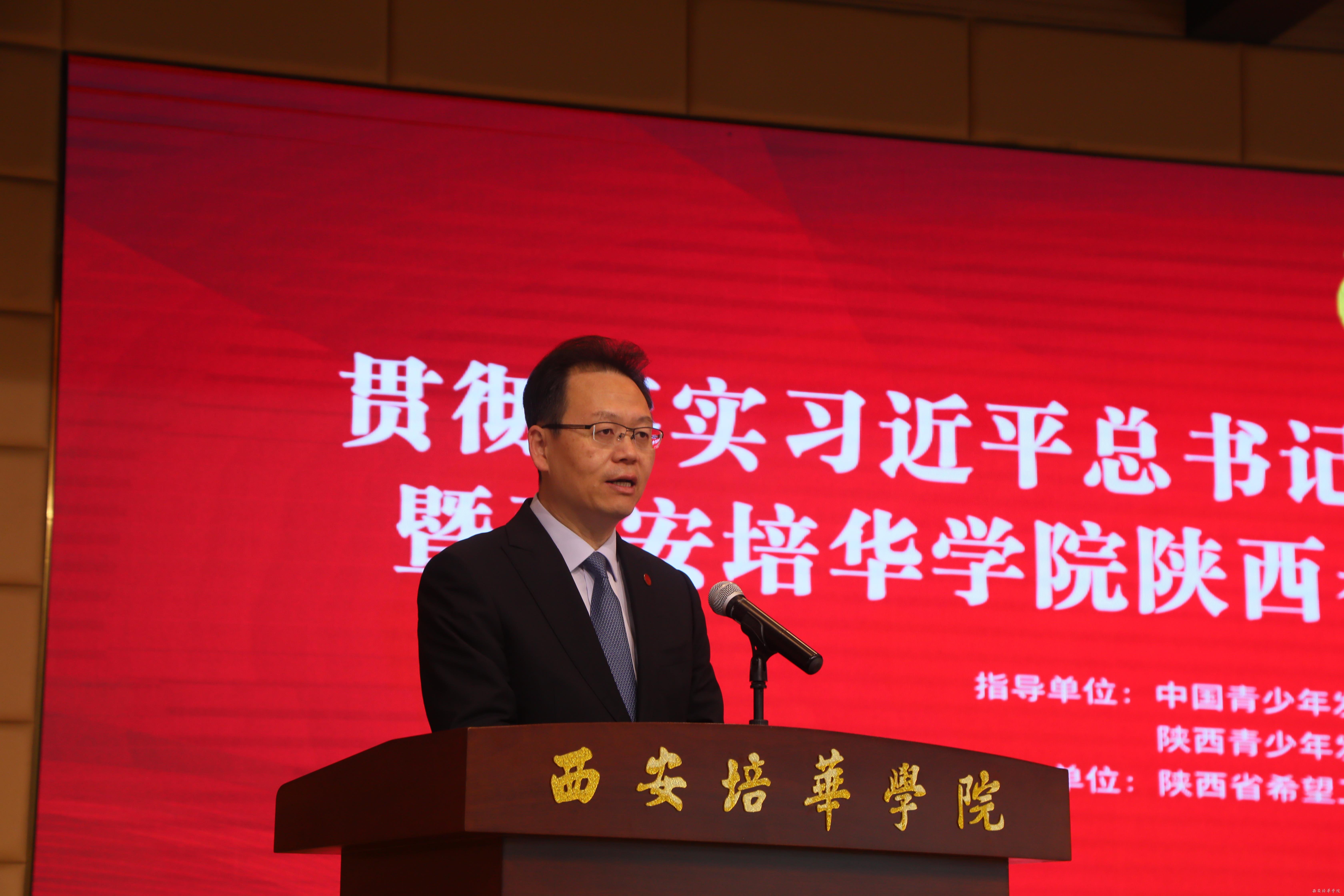 为学习贯彻落实党的十九届五中全会精神,进一步深入学习贯彻落实习近平总书记对希望工程寄语精神,推动新时代陕西希望工程事业发展,11月20日上午,由共青团陕西省委、陕西省青少年发展基金会、西安培华学院等单位联合举办的贯彻落实习近平总书记寄语希望工程精神报告会暨西安培华学院陕西希望工程公益研究院成立仪式在西安培华学院举行。
