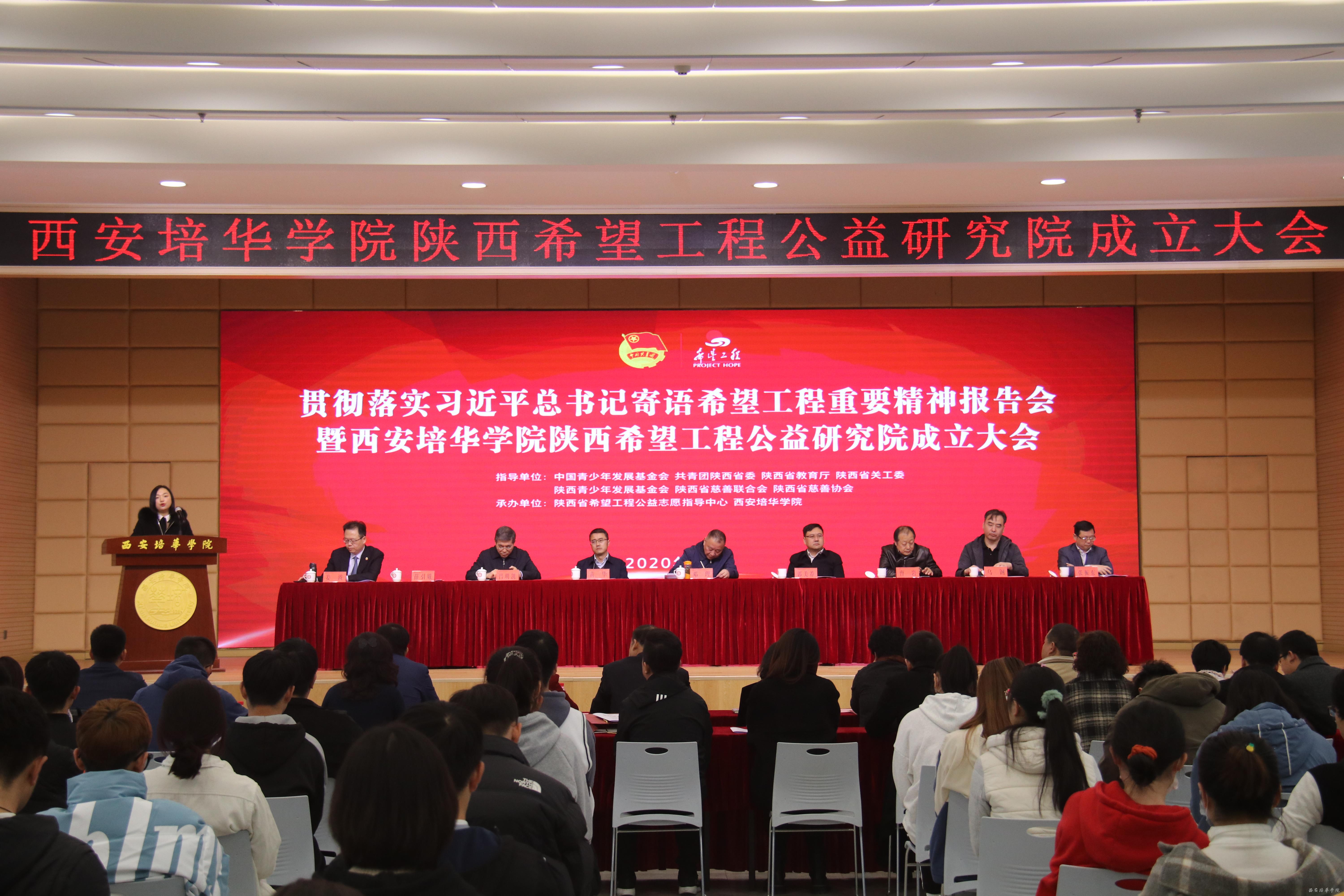 为学习贯彻落实党的十九届五中全会精神,进一步深入学习贯彻落实习近平总书记对希望工程寄语精神,推动新时代陕西希望工程事业发展,11月20日上午,由共青团陕西省委、陕西省青少年发展基金会、西安培华学院等单位联合举办的贯彻落实习近平总书记寄语希望工程精神报告会暨西安培华学院陕西希望工程公益研究院成立仪式在西安培华学院举行。
