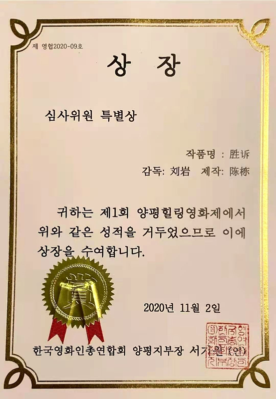 11月12日,由广播电视编导专业学科带头人陈玲副教授指导,西安培华学院传媒学院2013级毕业生刘岩的毕业作品微电影《胜诉》在刚刚结束的韩国杨平国际电影节斩获评委会特别奖。