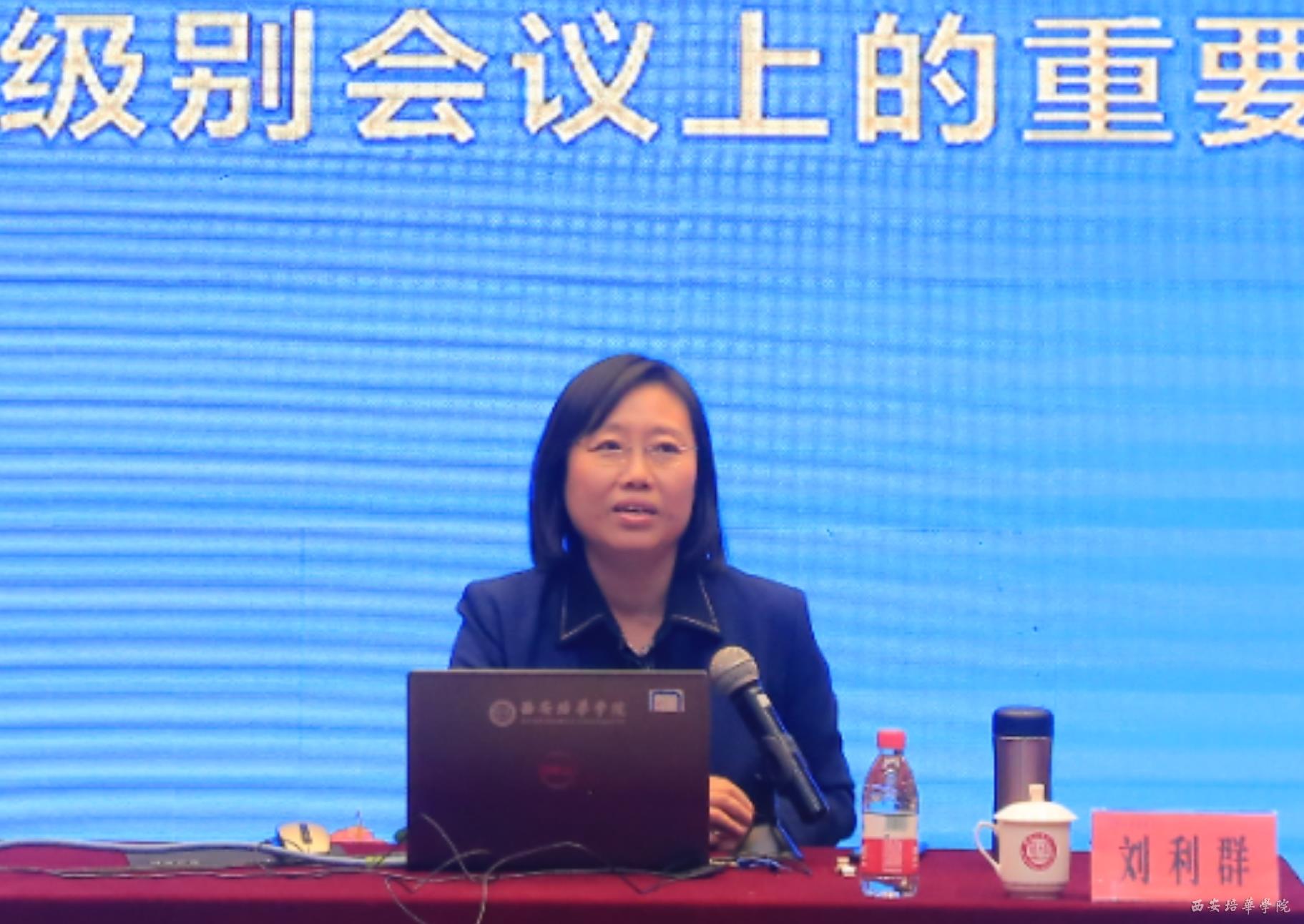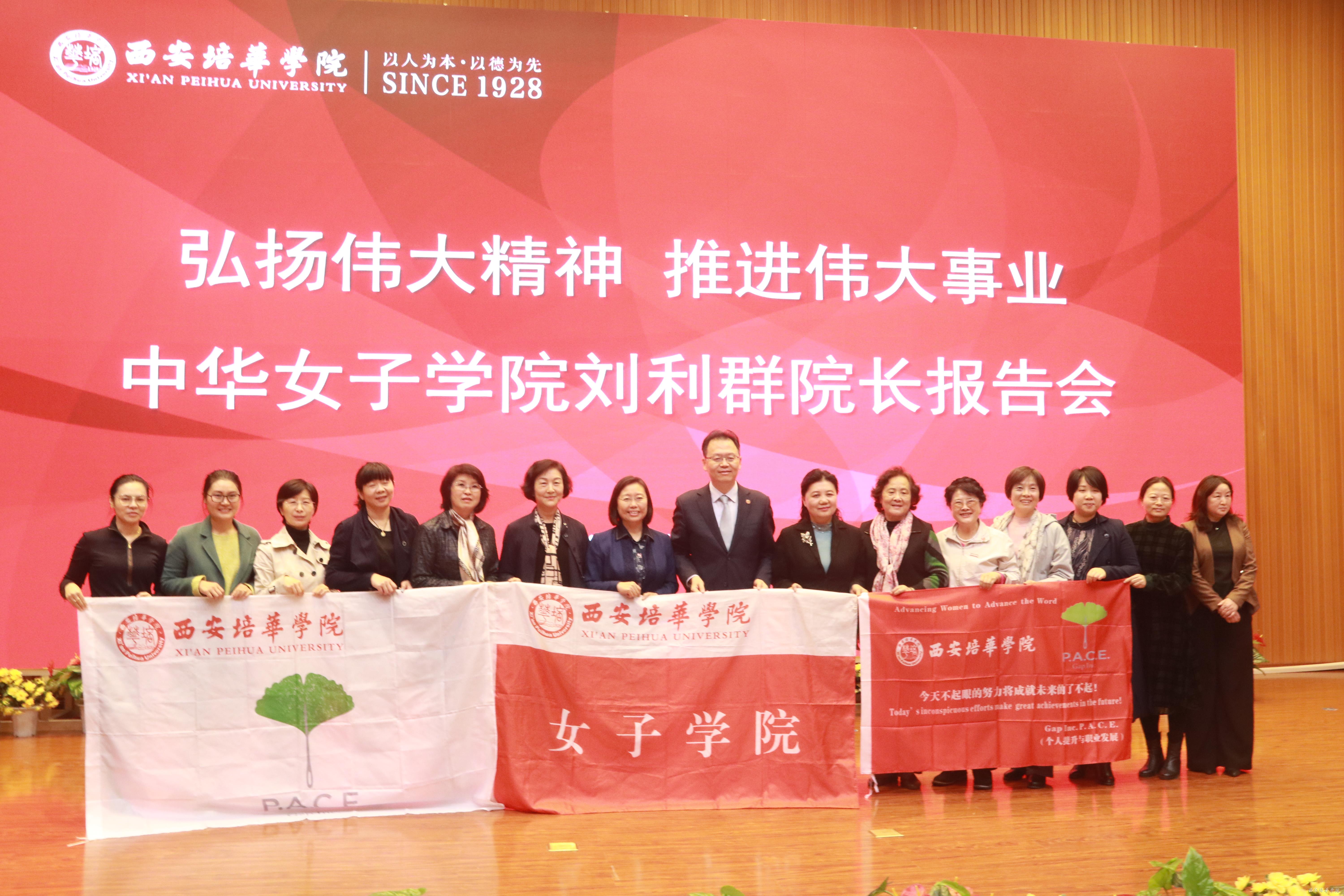 11月8日下午,中华女子学院院长、全国妇联干部培训学院院长、党委副书记刘利群教授以“弘扬伟大精神,推进伟大事业——学习习近平总书记在联合国纪念北京世妇会二十五周年高级别会议的重要讲话”为主题的报告会在西安培华学院图书馆报告厅召开。西安培华学院理事长姜波博士出席并讲话。西安培华学院学术委员会主席、学位评定委员会主席、副校长刘越莲教授主持报告会。西安培华学院女子学院、人文与国际教育学院、传媒学院400余名师生参会。