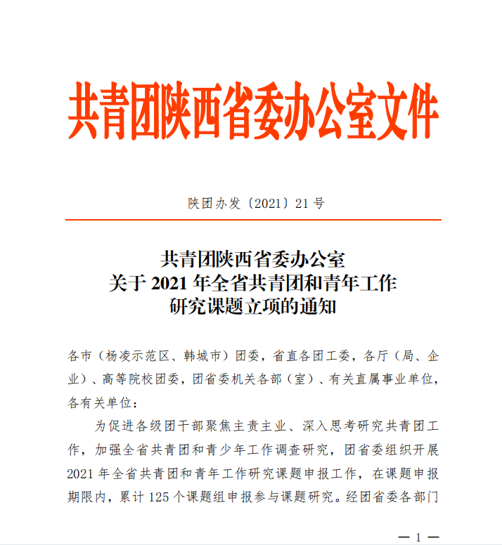 近日,在关于共青团科研项目的申报工作中,学校积极开展、广泛宣传,取得了新的突破。其中:学校申报的《陕西共青团“大公益”工作体系研究》课题(项目编号:054)在共青团陕西省委发布的《关于2021年全省共青团和青年工作研究课题立项的通知》中获得省级立项,;《健康青春,拥抱未来项目》(项目编号:237)在中国计划生育协会发布的《关于2020年青春健康高校项目招标中标结果的通知》中获得国家级立项,并由中国计生协提供项目经费(A类);《西安培华学院禁毒防艾社青春健康宣传教育项目》(项目编号:2021610100A000088)在中国性病艾滋病防治协会发布的《中国性病艾滋病防治协会2021年高校防艾基金拟资助项目名单》中被评为A类级别,并享受国家资助。