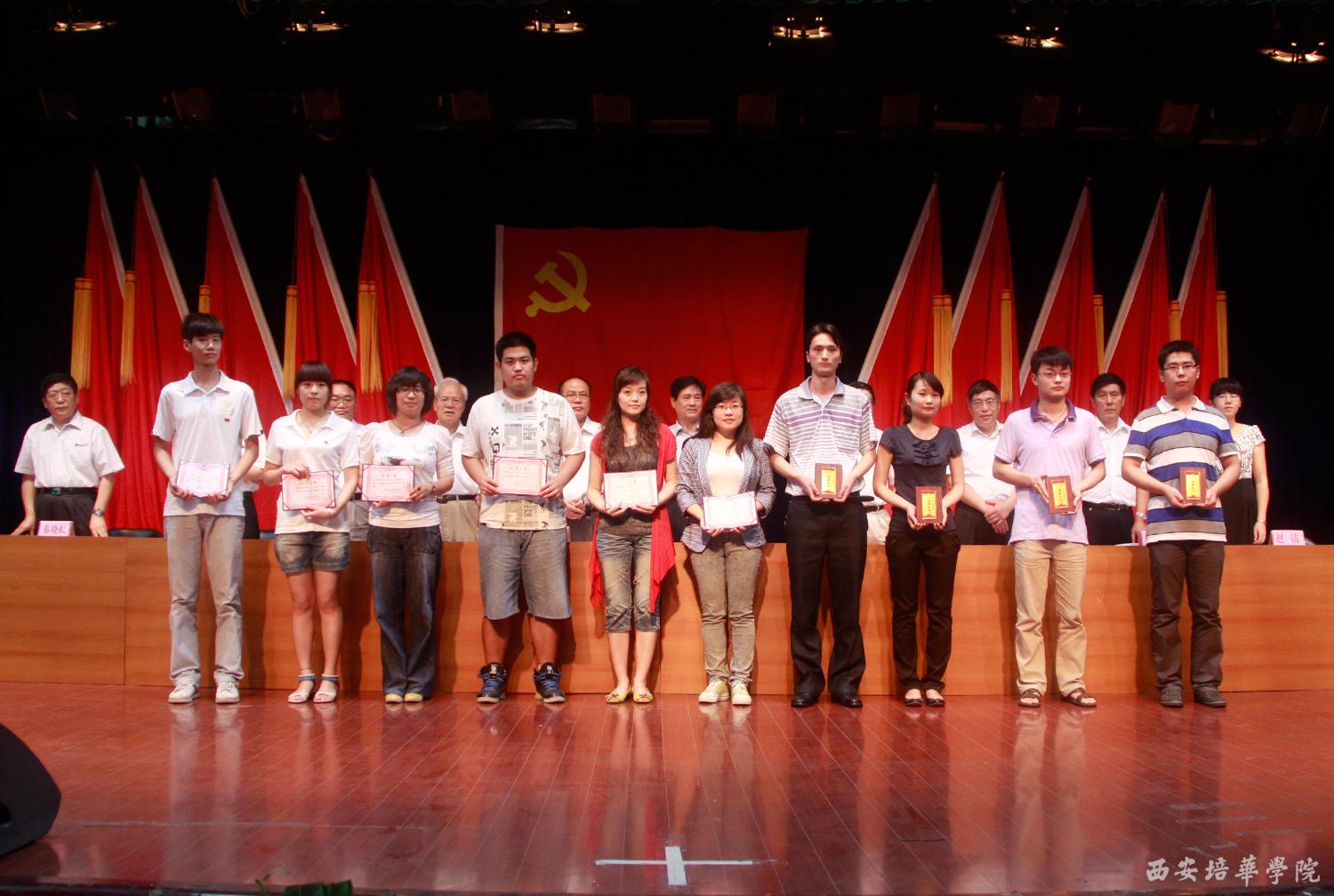 党委副书记、副院长陈胜秋宣读了《中共陕西省委教育工委关于表彰陕西高等学校先进基层党组织、优秀共产党员和优秀党务工作者的决定》和《中共西安培华学院委员会关于表彰先进基层党组织、优秀共产党员和优秀党务工作者的决定》。财会学院党总支、文法学院党总支、经济管理学院党总支被评为先进党总支部;机关第二党支部等13个党支部被评为先进党支部;屈阳等57名同志被评为优秀共产党员;高婷等5名同志被评为优秀党务工作者。随后,校领导依次为获奖单位和个人颁奖。