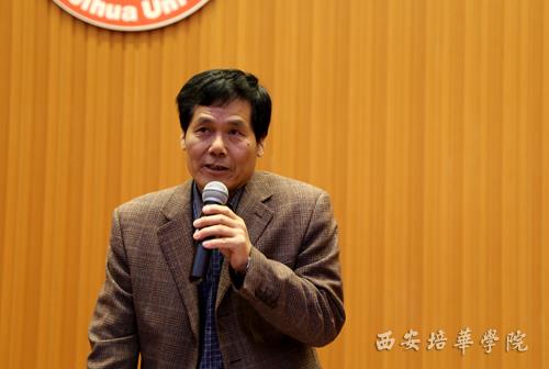 西安培华学院科研处处长王西安教授主持报告会,他讲到,“长安讲坛”是陕西省社科联的品牌宣传栏目,是社科界久负盛名的舆论平台。2015年是“长安讲坛”创办十周年,选择在我校举行首场报告会,寄托着省社科联对我校社科研究事业繁荣发展的热切期望。希望全体师生认真聆听讲座,给自己的心灵一次提升和净化的机会。