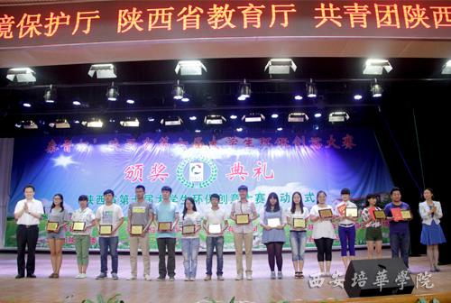 本届大赛冠名单位陕西秦晋矿业开发有限公司董事长杨百章也发表了讲话。颁奖典礼之后,省教育厅副厅长王海波宣布陕西省第七届大学生环保创意大赛正式启动。我校大学生艺术团带来了精彩的节目表演,赢得大学生和与会嘉宾的热烈掌声。