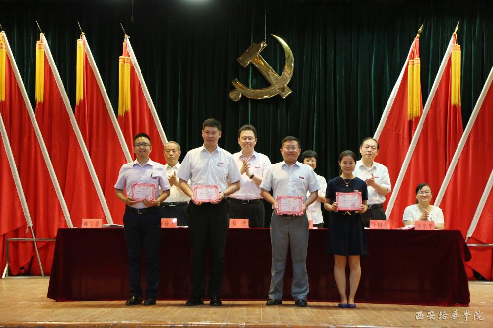 校长王拴才宣读了《中共西安培华学院委员会关于表彰优秀共产党员 优秀党务工作者 先进基层党组织和先进党支部的通知》。随后参会的校领导对获奖的4个先进基层党组织、15个先进党支部、31名优秀共产党员及4名优秀党务工作者进行了颁奖。