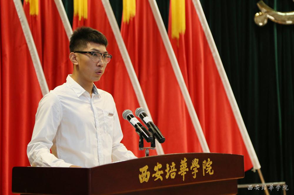 传媒学院刘桐江作为新党员代表发言,他代表全校新党员感谢学校对他们培育,并表示,作为新党员他会珍惜这次机会,也必将铭记自己向党和人民许下的郑重承诺,把入党誓词作为自己终身的追求、终身的修养和终身的实践。为了践行誓言,他们会加强学习,全心全意为党和人民服务,争做合格党员。
