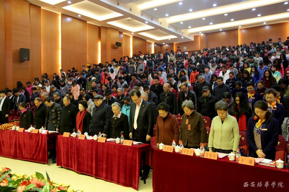12月12日,纪念西安事变79周年暨抗日战争胜利70周年征文活动颁奖大会在我校维之图书馆报告厅举行,出席此次活动的领导及嘉宾有:中国延安精神研究会理事,北京延安儿女联谊会会长胡木英; 原全国政协副主席何长工之子、亚太旅游联合会主席何光晔夫妇;原共青团中央书记处第一书记、中共中央办公厅第一副主任冯文彬之女冯延曦;原甘肃省人大常委会副主任、政协副主席蒙定军之女、科技部办公厅原主任蒙建东,蒙建亚;陕西省政协委员、著名歌唱家贠恩凤;陕西省政协常委、致公党陕西省委会副主委、陕西省红色文化研究院理事长、我校理事长姜波;陕西省红色文化研究院秘书长、陕西三秦红色文化传播中心主任王放等。