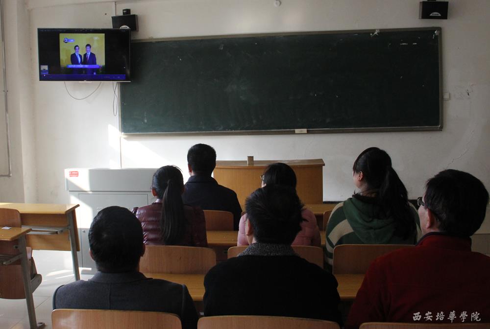 我校商学院组织师生观看“习马会”的新闻报道