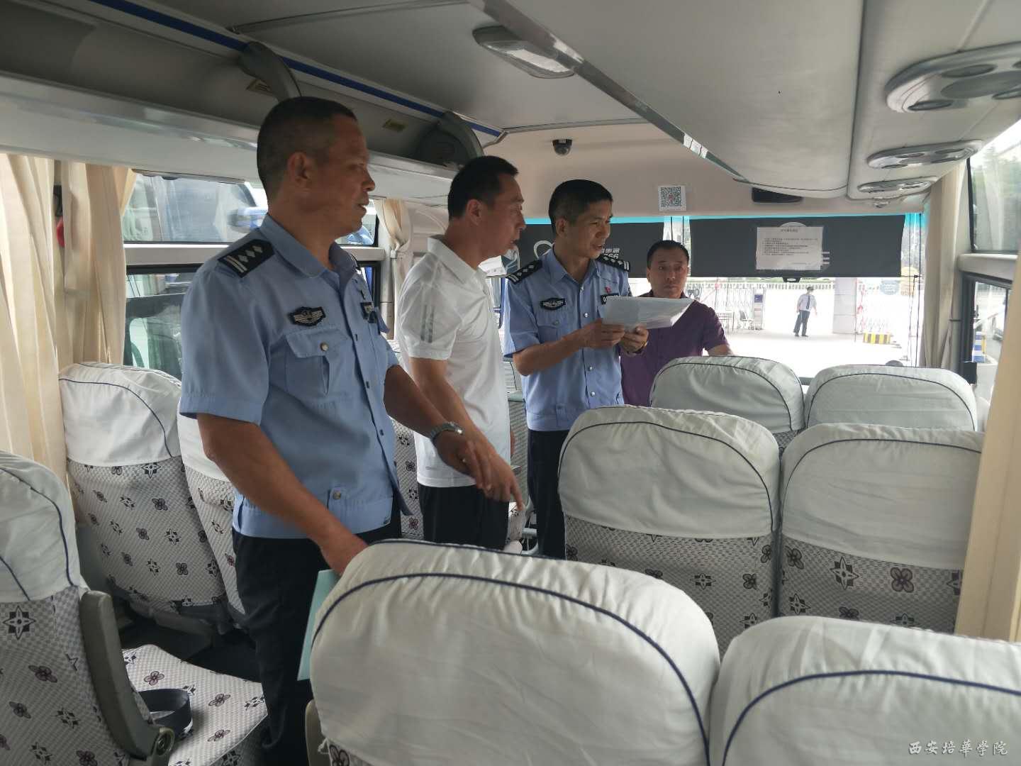 7月10日上午,西安交警高新大队安监科科长黄旭、民警吕卫鹏一行来我校检查校车队安全隐患排查工作,后勤服务中心主任助理李文生、校车队队长刘小明及全体车队驾驶员陪同检查。