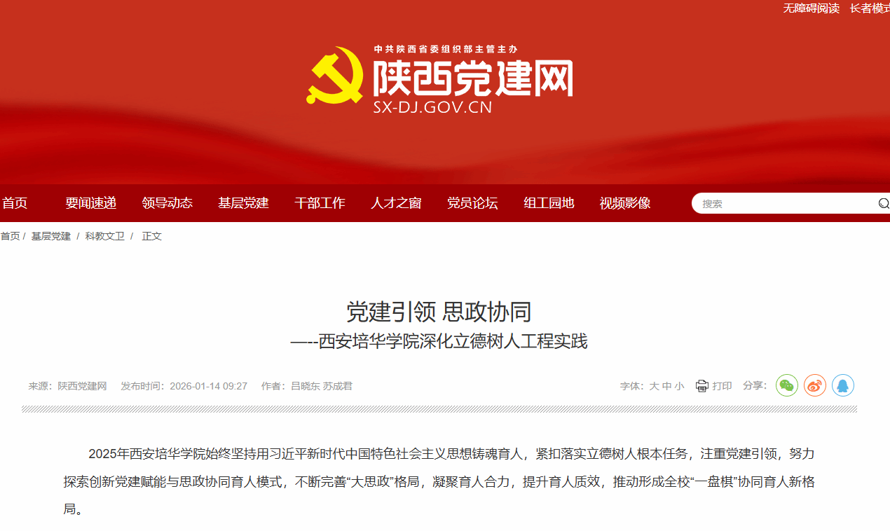 2025年西安培华学院始终坚持用习近平新时代中国特色社会主义思想铸魂育人,紧扣落实立德树人根本任务,注重党建引领,努力探索创新党建赋能与思政协同育人模式,不断完善“大思政”格局,凝聚育人合力,提升育人质效,推动形成全校“一盘棋”协同育人新格局。