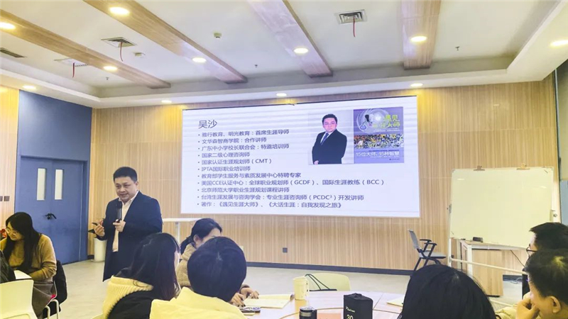 为期三天的培训中,吴沙老师围绕大学生职业生涯规划教学“设计——展示——指导”的流程,分步讲解包含生涯教学定位、设计、示范、指导在内的丰富内容。