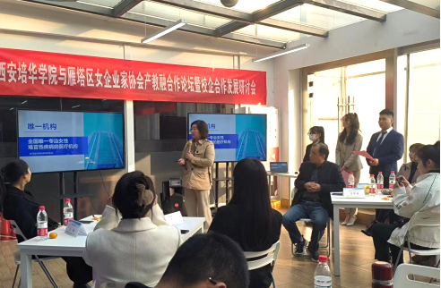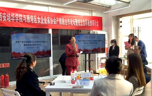 本次“跨界·融合”产教融合应用型人才培养专项研讨会暨校企合作意向洽谈会,促进了西安培华学院与西安女企业家协会的沟通与共建,有利于校企合作、资源共享,拓宽了人才的培养渠道和维度。参加本次会议的雁塔区女企协会员有:雁塔区女企协会会长梁树言、秘书长李国兴,西安卡西尔环保科技股份有限公司总经理陈波,陕西新同方汽车维修保养服务有限公司董事长李亚娟,西安鲜女品牌经营管理有限公司人资总监王峥嵘,陕西慧德青少年心理健康教育研究院副理事长梁冰妍,陕西顺利办信息科技控股有限公司副总经理万楠,西安有温度教育科技有限公司副总经理高翱,西安源初环境科技有限公司总经理蔡月清,西安市莲湖区邱学华门诊部院长邓黎,西安利兹美医疗美容有限公司总经理王立库,中科博文教育科技(西安)有限公司总经理杨鹏,陕西精挑优先供应链管理有限公司总经理苏超,陕西奇兔信息科技有限公司总经理祁昌锋,中正致诚人力资源(陕西)有限公司董事长张耀升,陕西鲁公筑学实业有限公司副总经理周薪,西安旅游协会负责人丁晓阳,西安康姿宝生物科技有限公司总经理徐维静,西安市退役军人服务协会副秘书长王艳,西安旭东升保洁服务公司项目总监赵森林。