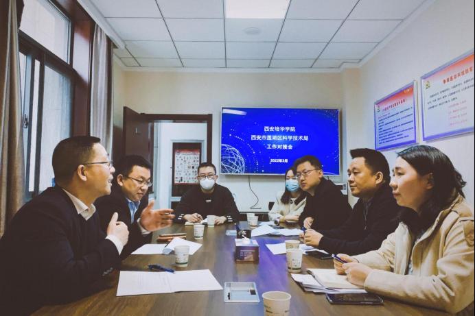 3月29日下午,学校合作与发展办公室吴军政、屈先锋两位老师受邀参加西安市莲湖区科学技术局进行工作对接会,商讨共建科普志愿者服务队伍,莲湖区科技局科普中心主任黄河、创新科科长李瑶等人参会。本次对接旨在为西安培华学院人才培养、学科(专业)建设搭建合作平台,加快成果转化工作,加大产学研对接力度,促进莲湖区企业成长,为地方经济和社会发展提供服务与支撑。