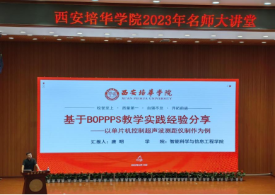 6月14日下午,教师教学发展中心特邀我校教学名师、陕西省技术状元、智能科学与信息工程学院唐明副教授,在维之图书馆报告厅为我校200余名青年教师作了题为《基于BOPPPS教学实践经验分享--以单片机控制超声波测距仪制作为例》的讲座。本次讲座主要面向讲师及以下职称的青年教师,重点围绕BOPPPS教学法进行案例展示和经验分享。