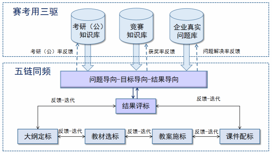 五链同频:闭环迭代驱动质量跃升。以结果导向为核心,通过“大纲定标-教材选标-教案施标-课件配标-结果评标”五环节反馈迭代机制,推动教学全要素动态优化。依据考研、竞赛及学生反馈数据,动态调整课程大纲模块权重、更新教材前沿内容、迭代教学案例、创新教学方法,让教学内容与时代同频、与需求契合。