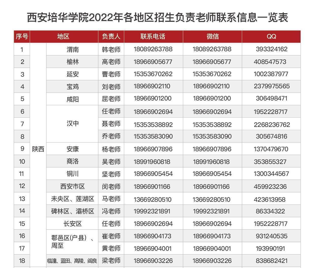 三、各地区招生负责老师联系方式