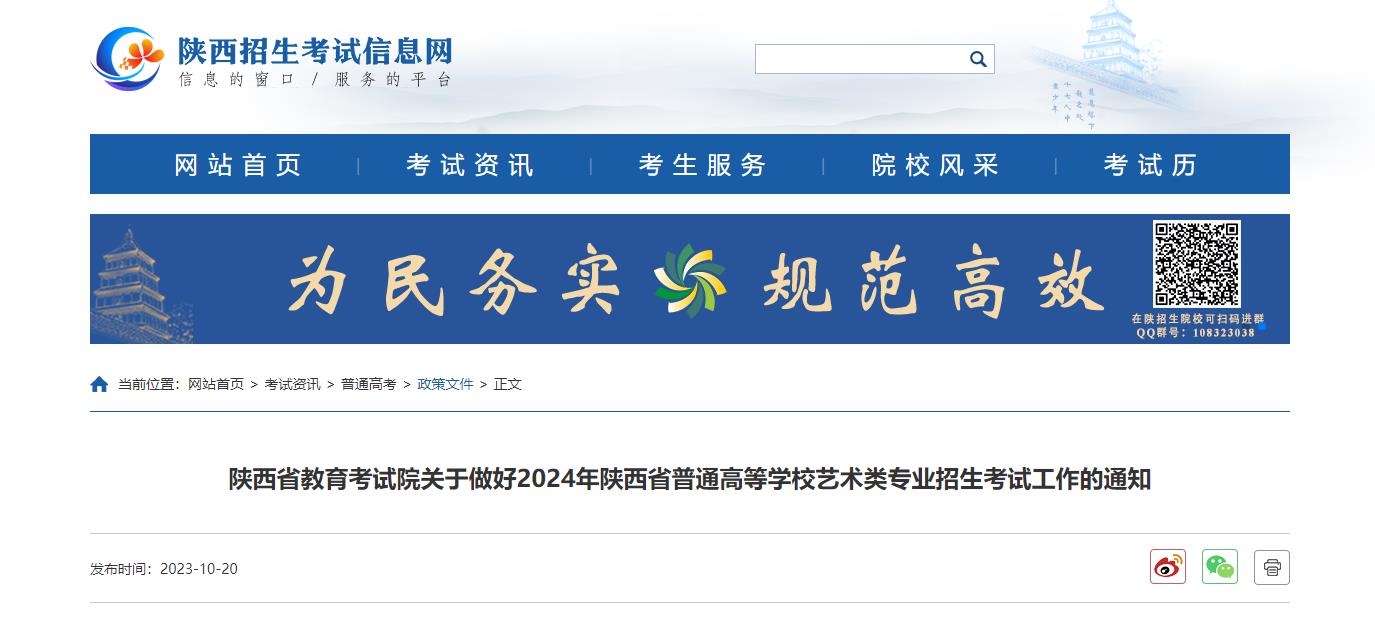 点击直达政策文件:陕西省教育考试院关于做好2024年陕西省普通高等学校艺术类专业招生考试工作的通知