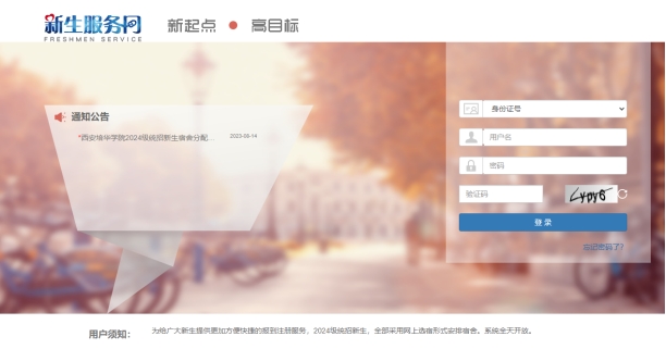 进入“西安培华学院新生网上注册系统”专题页面(西安培华学院招生信息网专题页面),仔细阅读《西安培华学院2024级统招新生宿舍分配方案》及《2024级专升本新生网上注册流程》;